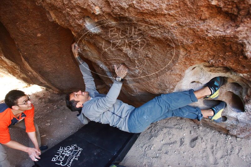 Blue Lizard Climbing and Yoga Hueco Tanks guiding on March 9, 2019, with Carlos and Carissa |