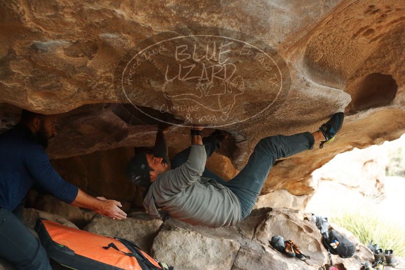 Blue Lizard Climbing and Yoga Hueco Tanks guiding on March 9, 2019, with Carlos and Carissa |
