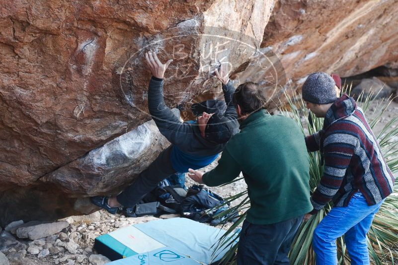 Blue Lizard Climbing and Yoga Hueco Tanks guiding on March 15, 2019, with Matt, Matt, David, and Danny
