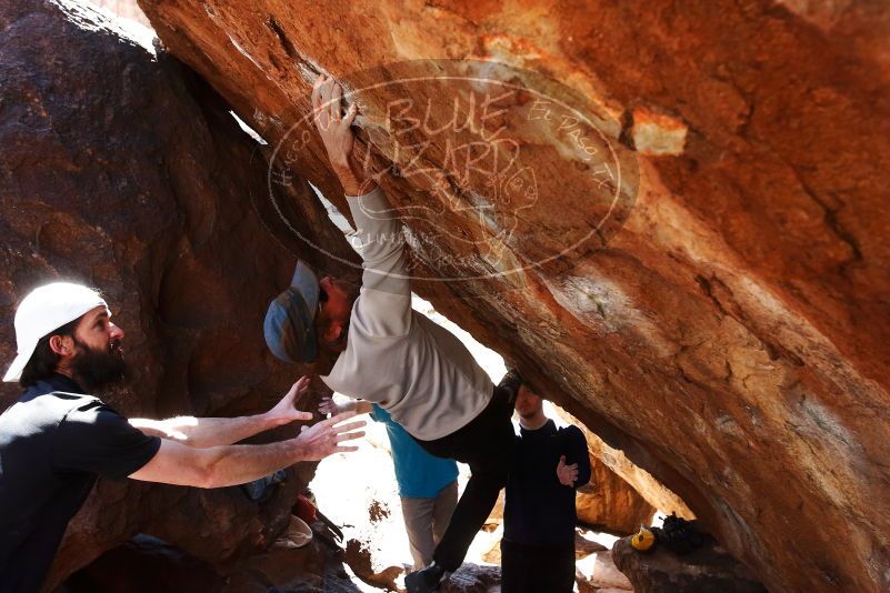 Blue Lizard Climbing and Yoga Hueco Tanks guiding on March 17, 2019, with Lance, Nick, Hudson,Mason, and Donna |