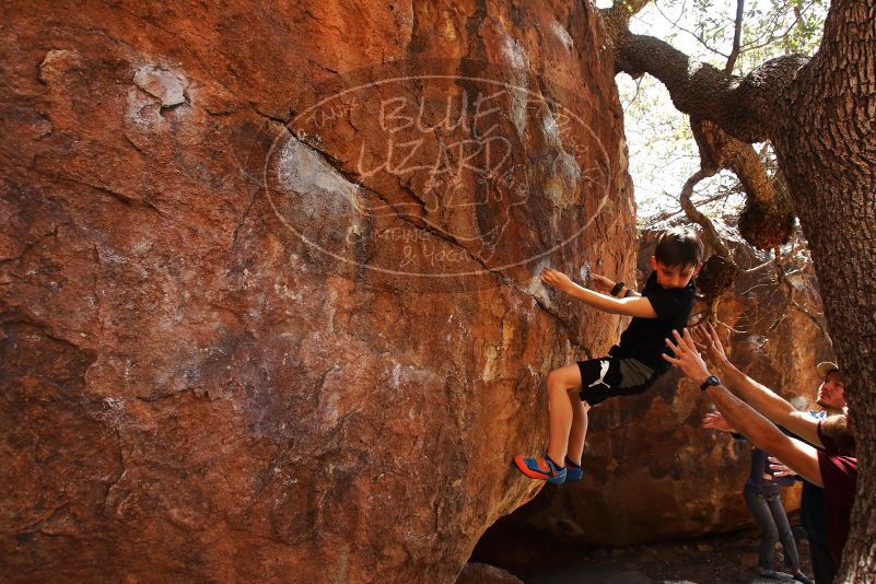 Blue Lizard Climbing and Yoga Hueco Tanks guiding on March 17, 2019, with Lance, Nick, Hudson,Mason, and Donna |