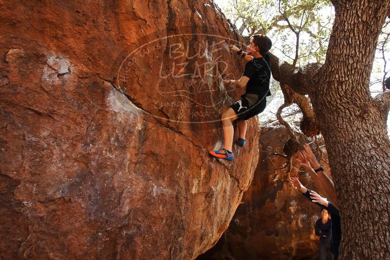 Blue Lizard Climbing and Yoga Hueco Tanks guiding on March 17, 2019, with Lance, Nick, Hudson,Mason, and Donna |