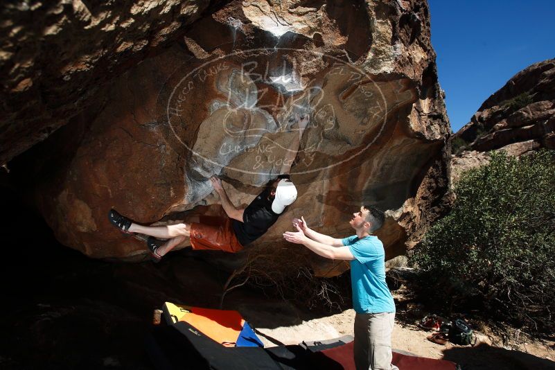 Blue Lizard Climbing and Yoga Hueco Tanks guiding on March 17, 2019, with Lance, Nick, Hudson,Mason, and Donna |