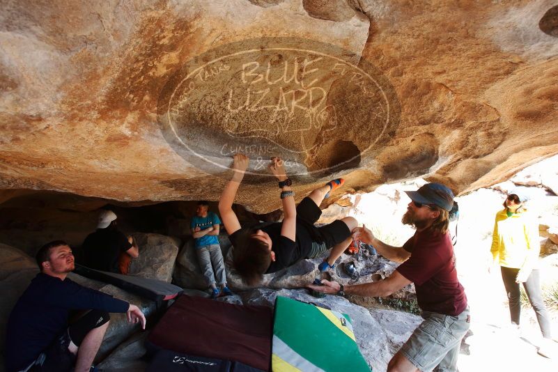 Blue Lizard Climbing and Yoga Hueco Tanks guiding on March 17, 2019, with Lance, Nick, Hudson,Mason, and Donna |