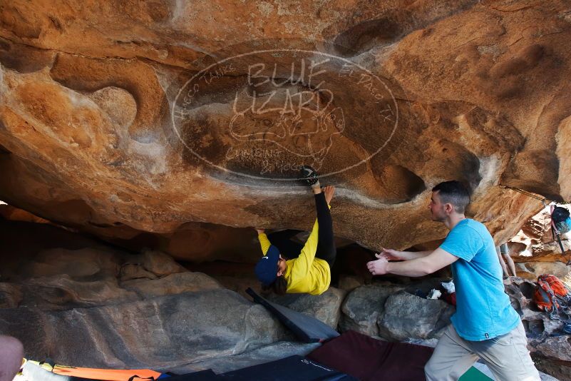 Blue Lizard Climbing and Yoga Hueco Tanks guiding on March 17, 2019, with Lance, Nick, Hudson,Mason, and Donna |