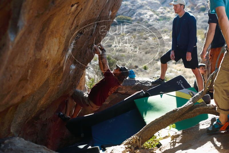 Blue Lizard Climbing and Yoga Hueco Tanks guiding on March 17, 2019, with Lance, Nick, Hudson,Mason, and Donna |