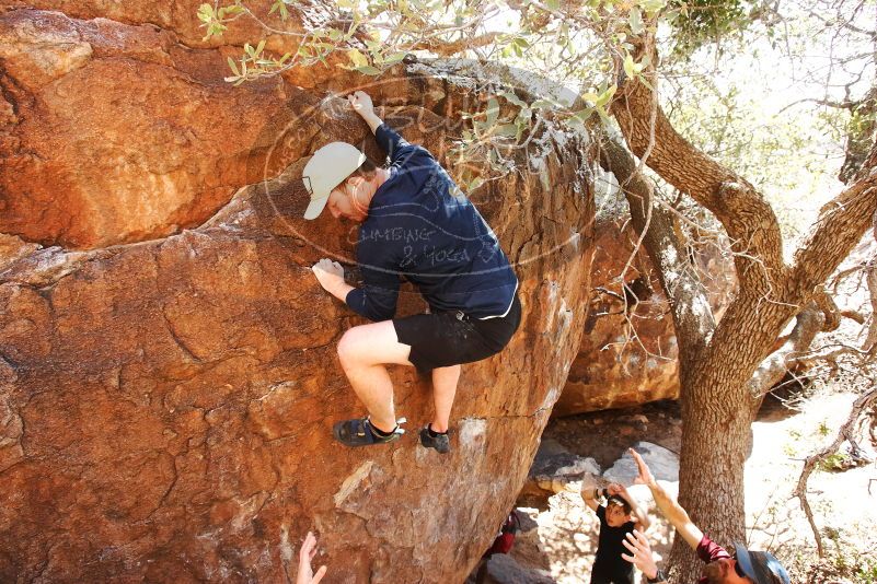 Blue Lizard Climbing and Yoga Hueco Tanks guiding on March 17, 2019, with Austin, MJ, Zak, Brian, and Lauren