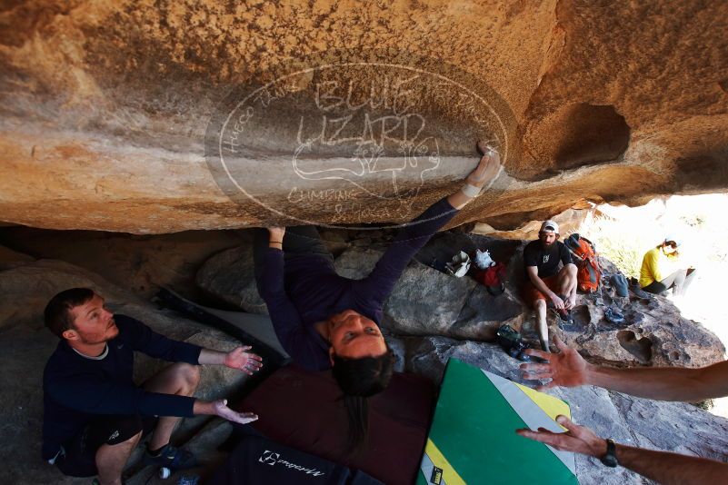 Blue Lizard Climbing and Yoga Hueco Tanks guiding on March 17, 2019, with Austin, MJ, Zak, Brian, and Lauren