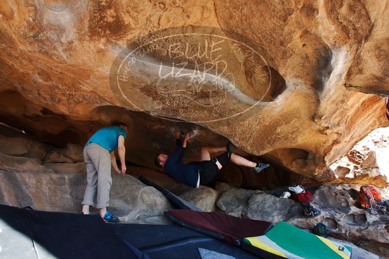 Blue Lizard Climbing and Yoga Hueco Tanks guiding on March 17, 2019, with Austin, MJ, Zak, Brian, and Lauren