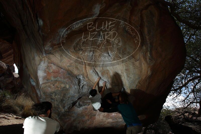 Blue Lizard Climbing and Yoga Hueco Tanks guiding on March 20, 2019, with Kevin and Leigh Ann |
