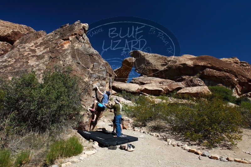 Blue Lizard Climbing and Yoga Hueco Tanks guiding on April 26, 2019, with Kathy, Tim, and Sam |