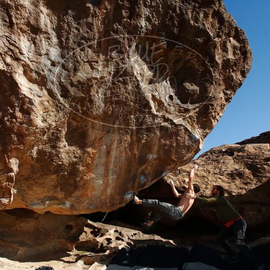 Blue Lizard Climbing and Yoga Hueco Tanks guiding on October 29, 2019, with Dino and Meg