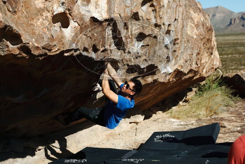Blue Lizard Climbing and Yoga Hueco Tanks guiding on November 9, 2019, with Jason, Peter, Caleb, Chase, and Emily