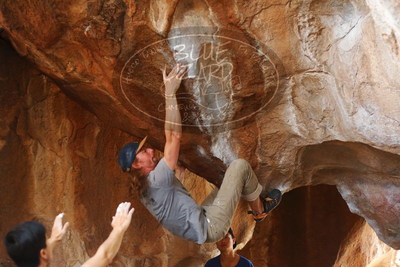 Blue Lizard Climbing and Yoga Hueco Tanks guiding on November 9, 2019, with Jason, Peter, Caleb, Chase, and Emily