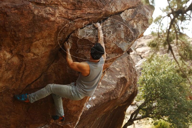 Blue Lizard Climbing and Yoga Hueco Tanks guiding on November 9, 2019, with Jason, Peter, Caleb, Chase, and Emily
