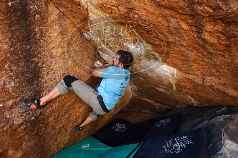 Blue Lizard Climbing and Yoga Hueco Tanks guiding on November 10, 2019, with Dom, Val, Caleb, Chase, and Emily |