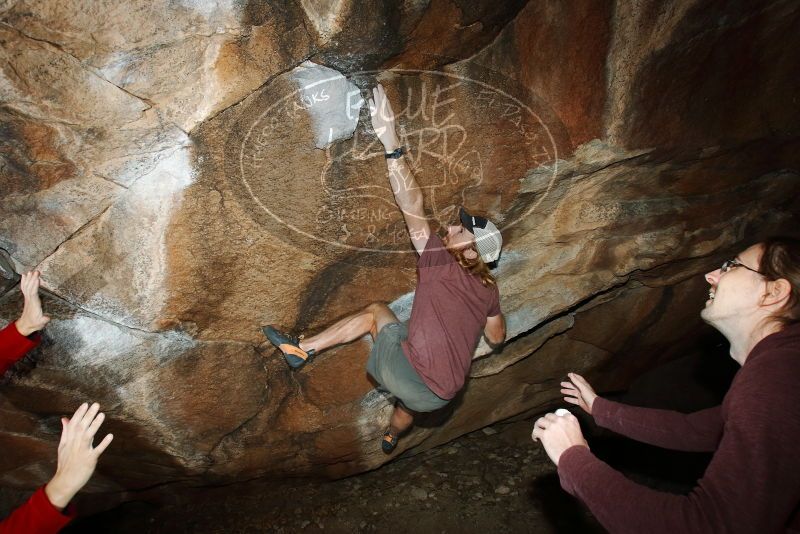 Blue Lizard Climbing and Yoga Hueco Tanks guiding on November 16, 2019, with with Cole, Amber, Sam, Aoi, and Tyler |