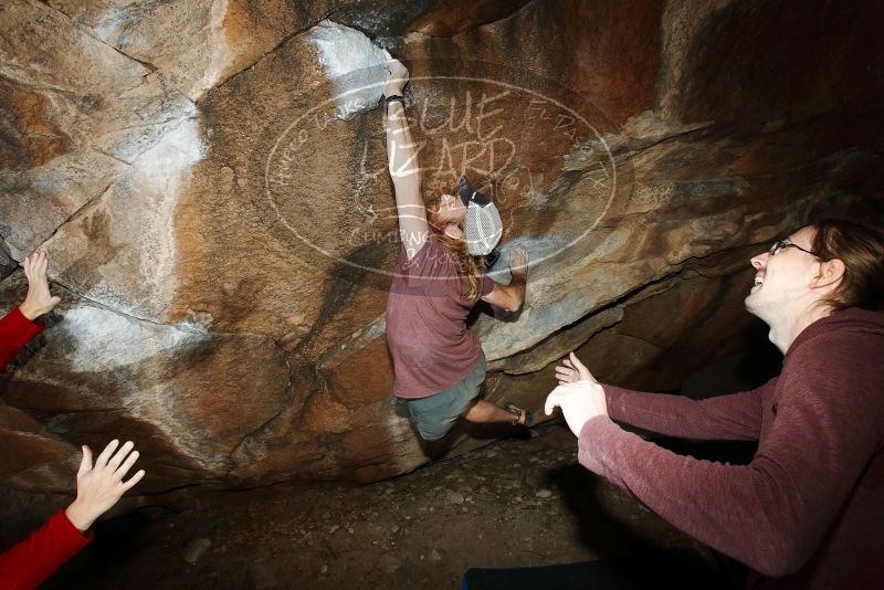 Blue Lizard Climbing and Yoga Hueco Tanks guiding on November 16, 2019, with with Cole, Amber, Sam, Aoi, and Tyler |