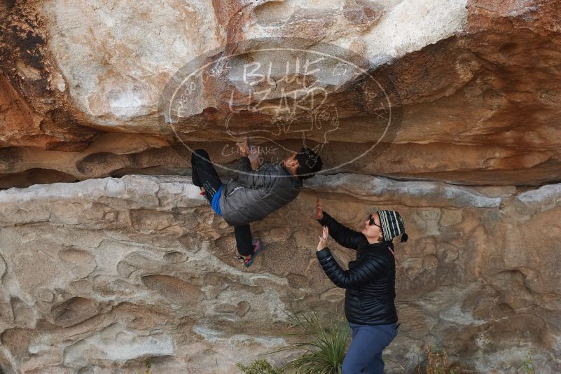 Blue Lizard Climbing and Yoga Hueco Tanks guiding on November 24, 2019, with Olivia, Meera, Nathan, Lily, and Jeremy |