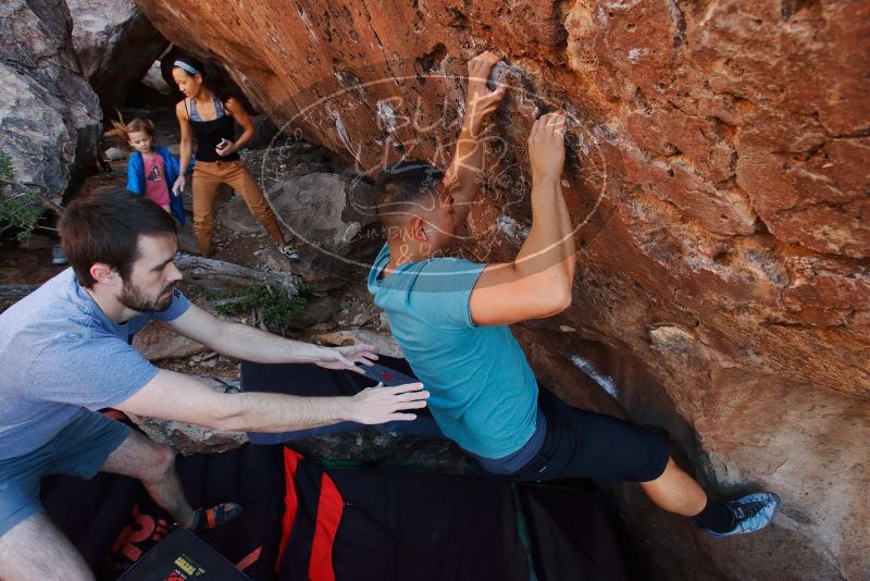 Blue Lizard Climbing and Yoga Hueco Tanks guiding on December 14, 2019, with Jesse, Mike, Rob, Chris, Miles, and An & Vy |
