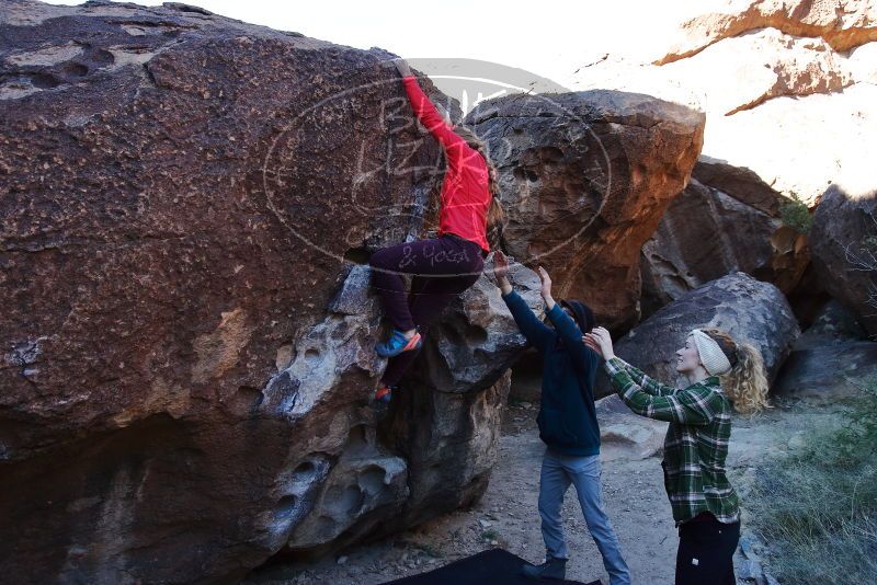 Blue Lizard Climbing and Yoga Hueco Tanks guiding on December 19, 2019, with Kenzie, Kat, Navish, Mariella, and Daniel |