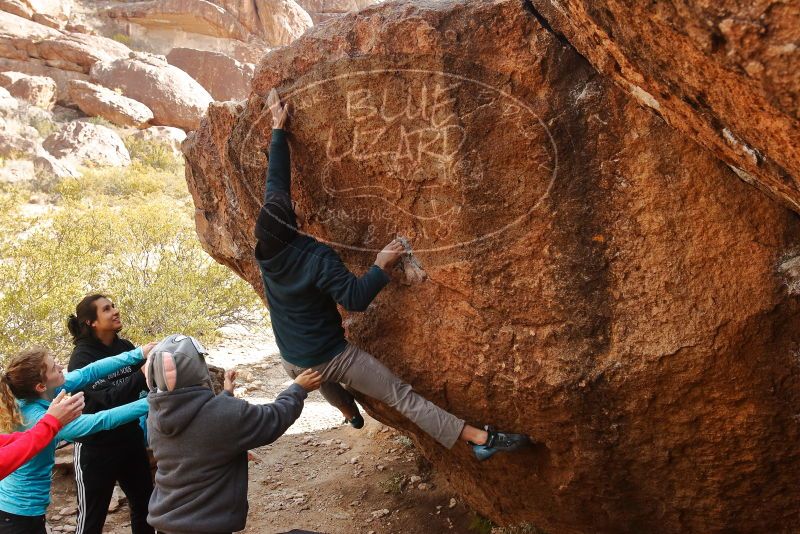 Blue Lizard Climbing and Yoga Hueco Tanks guiding on December 19, 2019, with Kenzie, Kat, Navish, Mariella, and Daniel |