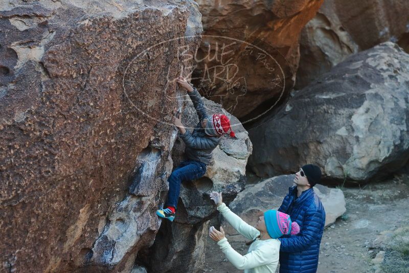 Blue Lizard Climbing and Yoga Hueco Tanks guiding on December 27, 2019, with the Sullivans |