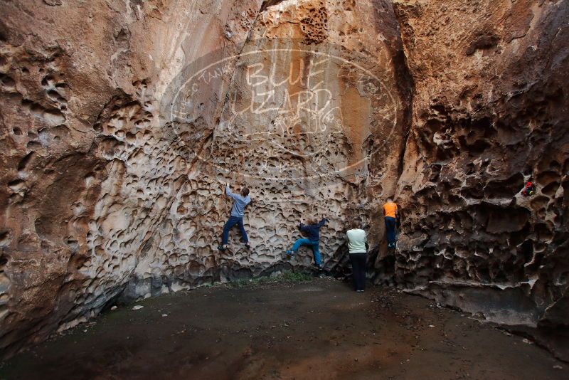 Blue Lizard Climbing and Yoga Hueco Tanks guiding on December 27, 2019, with the Sullivans |