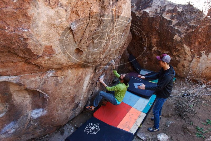Blue Lizard Climbing and Yoga Hueco Tanks guiding on February 14, 2020, with Johannes, Karson, Mark, Rewon, Hank, and Mandy |