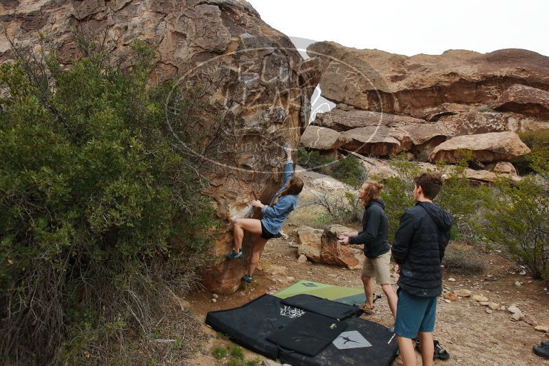 Blue Lizard Climbing and Yoga Hueco Tanks guiding on March 15, 2020, with Liam, Madison, Jack, and Stephen