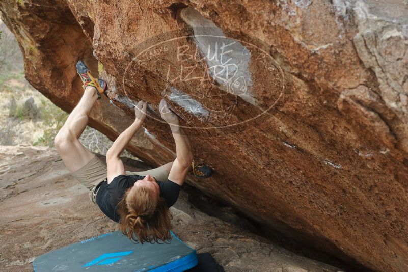 Blue Lizard Climbing and Yoga Hueco Tanks guiding on March 15, 2020, with Liam, Madison, Jack, and Stephen