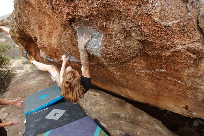 Blue Lizard Climbing and Yoga Hueco Tanks guiding on March 15, 2020, with Liam, Madison, Jack, and Stephen