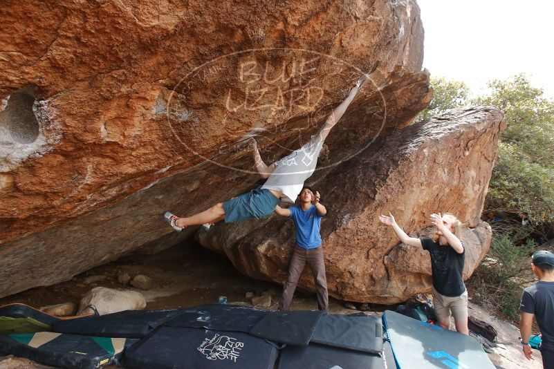 Blue Lizard Climbing and Yoga Hueco Tanks guiding on March 15, 2020, with Liam, Madison, Jack, and Stephen