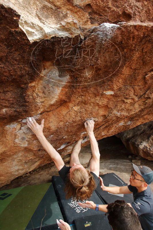 Blue Lizard Climbing and Yoga Hueco Tanks guiding on March 15, 2020, with Liam, Madison, Jack, and Stephen
