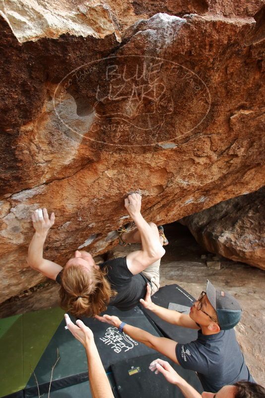 Blue Lizard Climbing and Yoga Hueco Tanks guiding on March 15, 2020, with Liam, Madison, Jack, and Stephen