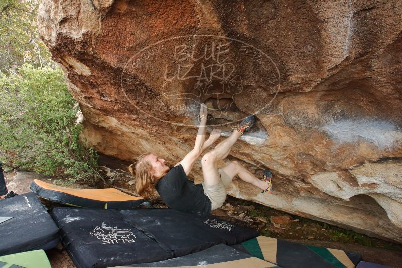 Blue Lizard Climbing and Yoga Hueco Tanks guiding on March 15, 2020, with Liam, Madison, Jack, and Stephen