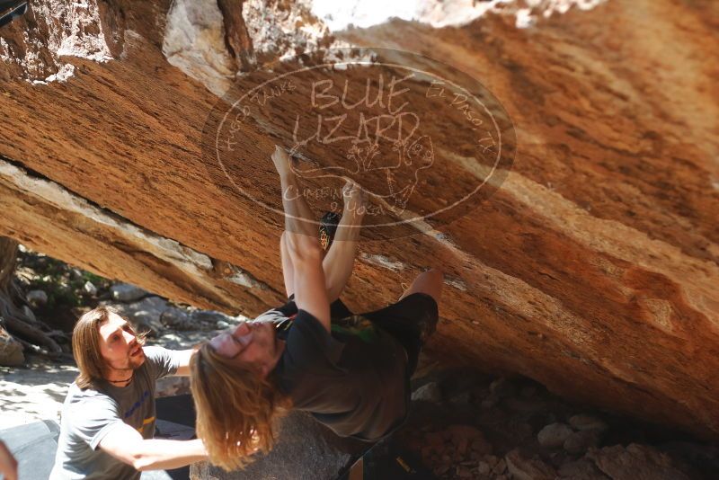 Blue Lizard Climbing and Yoga Hueco Tanks guiding on March 16, 2020, with Liam, Madison, Jack, and Stephen