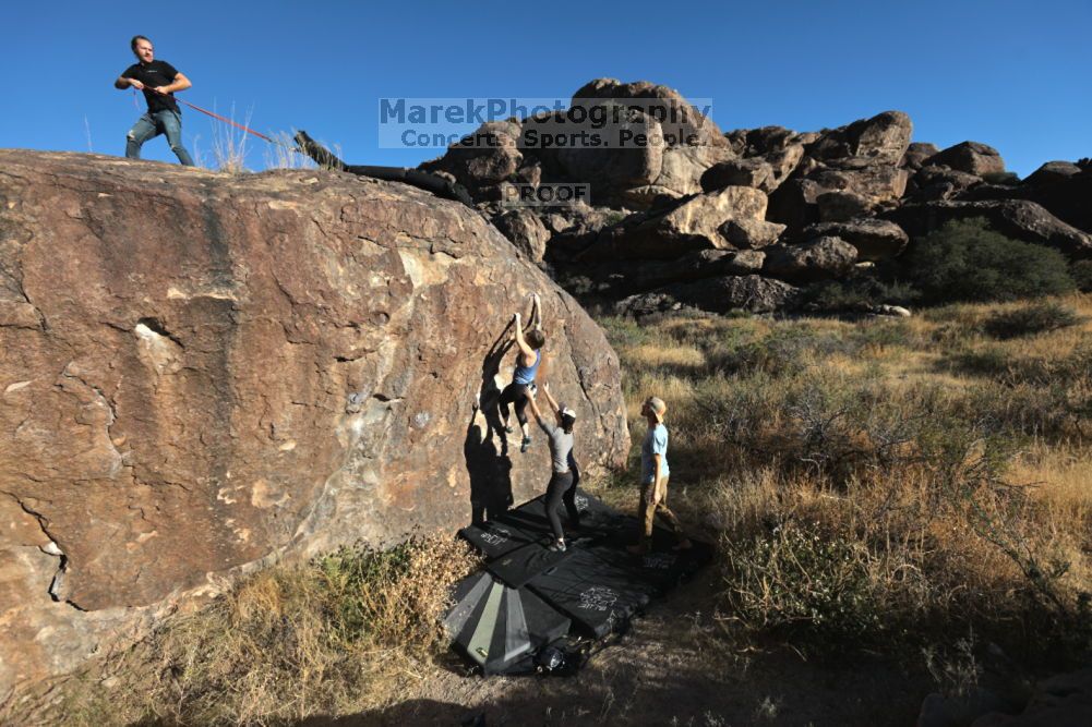Blue Lizard Climbing and Yoga Hueco Tanks guiding on November 14, 2021, with Alex, Cam, Carys, and Teal