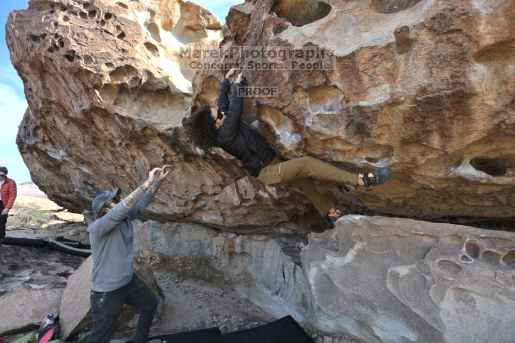 Blue Lizard Climbing and Yoga Hueco Tanks guiding on November 26, 2021, with Caroline & Joey, Devon, Hannah, Jerome, KB & Stef, and Lee