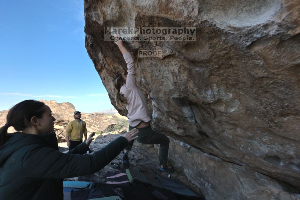 Blue Lizard Climbing and Yoga Hueco Tanks guiding on November 26, 2021, with Caroline & Joey, Devon, Hannah, Jerome, KB & Stef, and Lee