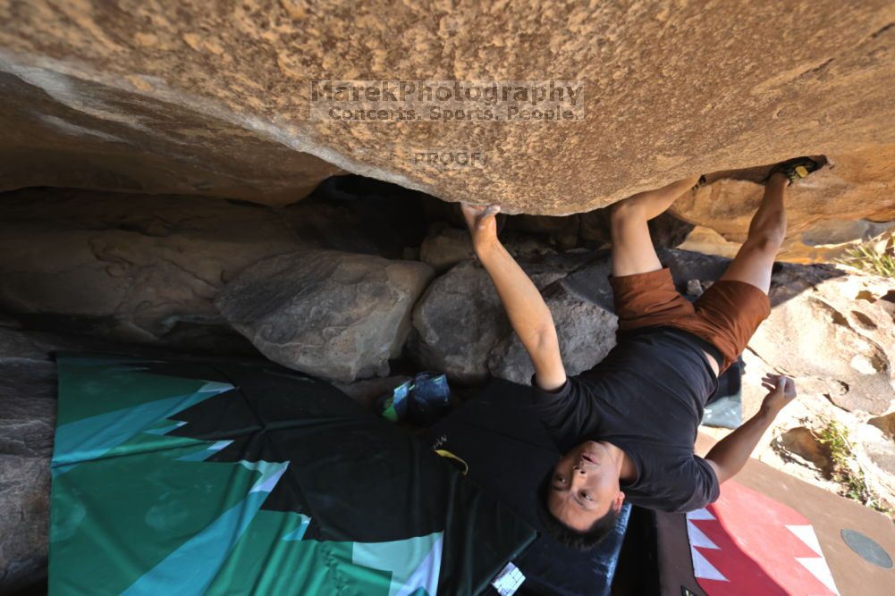 Blue Lizard Climbing and Yoga Hueco Tanks guiding on December 3, 2021, with Bo, Craig, Fei, and Gisella