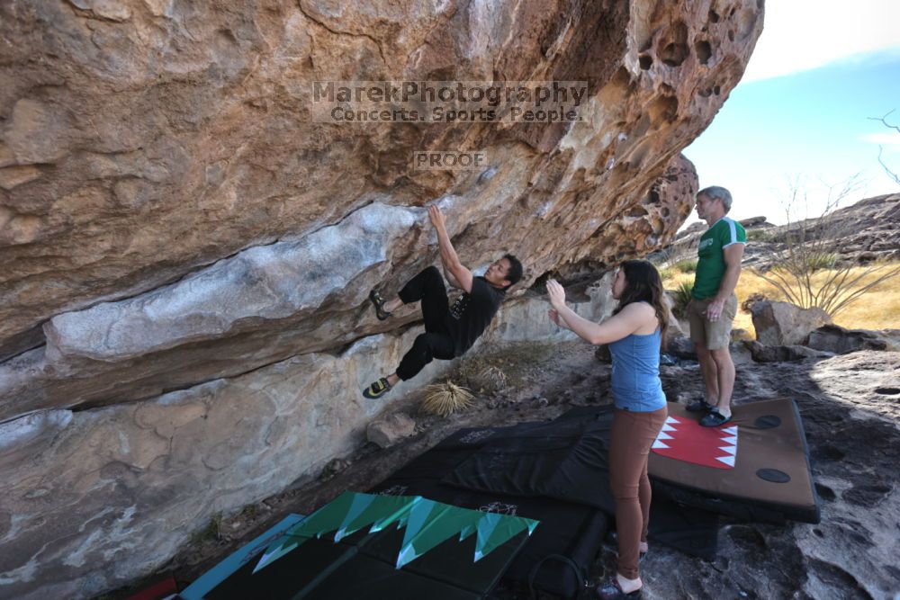 Blue Lizard Climbing and Yoga Hueco Tanks guiding on December 4, 2021, with Craig, Fei, and Gisella