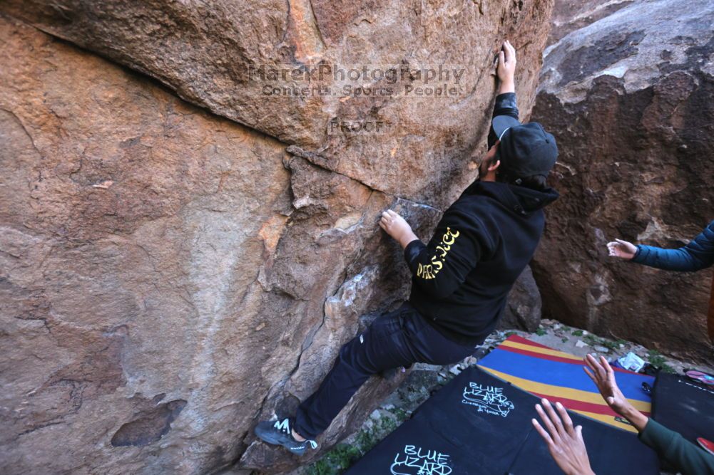 Blue Lizard Climbing and Yoga Hueco Tanks guiding on December 11, 2021, with Avery & Mia, Kevin, Jason, and JP