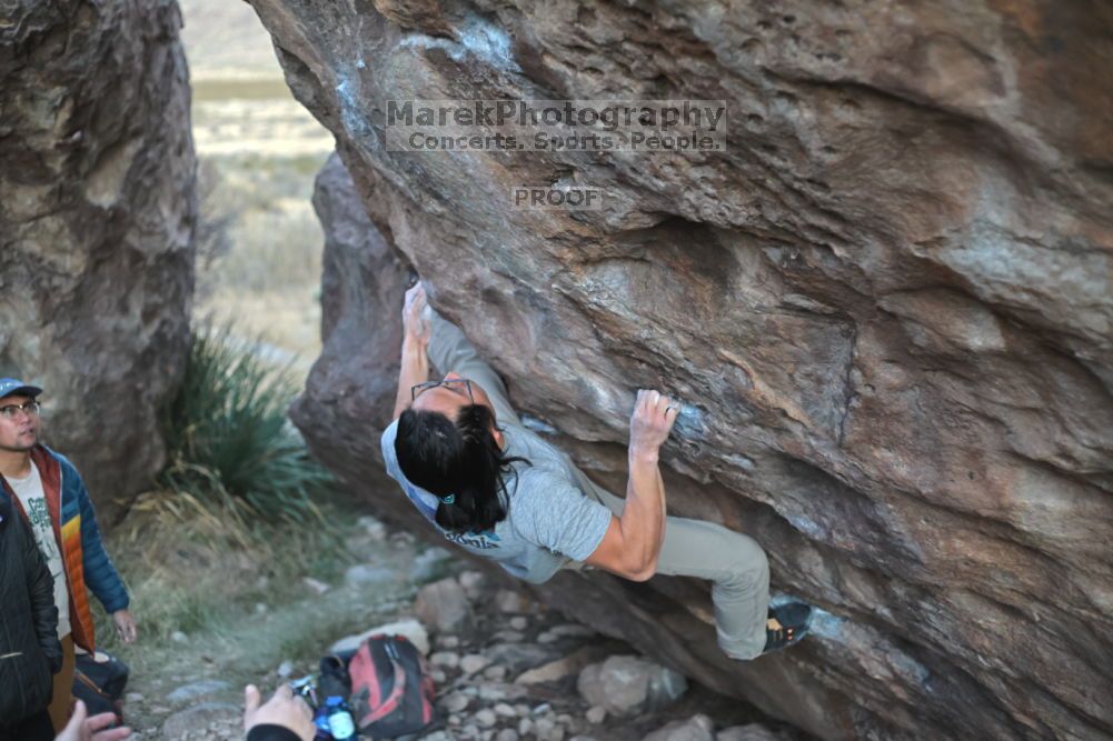 Blue Lizard Climbing and Yoga Hueco Tanks guiding on December 11, 2021, with Avery & Mia, Kevin, Jason, and JP