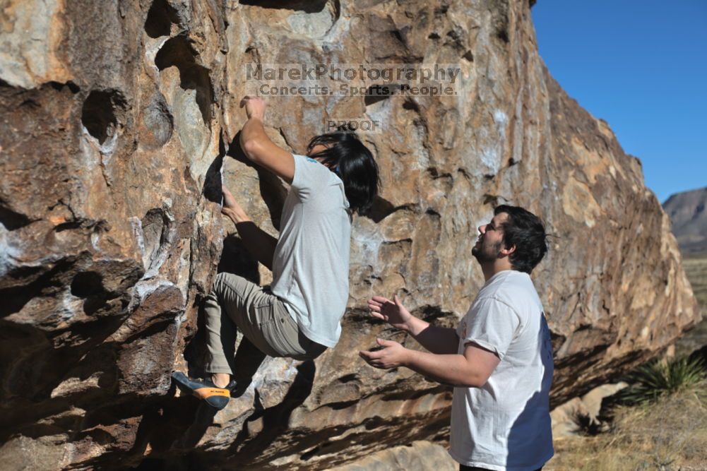 Blue Lizard Climbing and Yoga Hueco Tanks guiding on December 12, 2021, with Avery & Mia, Kevin, Jason, and JP