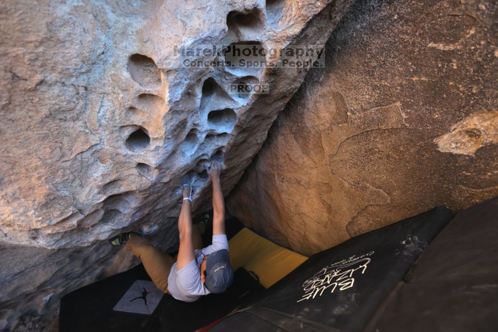 Blue Lizard Climbing and Yoga Hueco Tanks guiding on December 12, 2021, with Avery & Mia, Kevin, Jason, and JP