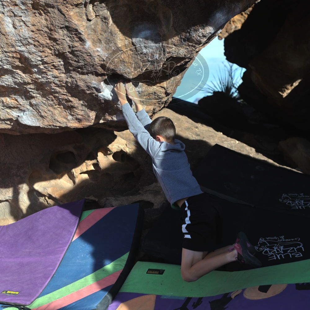 Blue Lizard Climbing and Yoga Hueco Tanks guiding on December 23, 2021, with the Sullivans