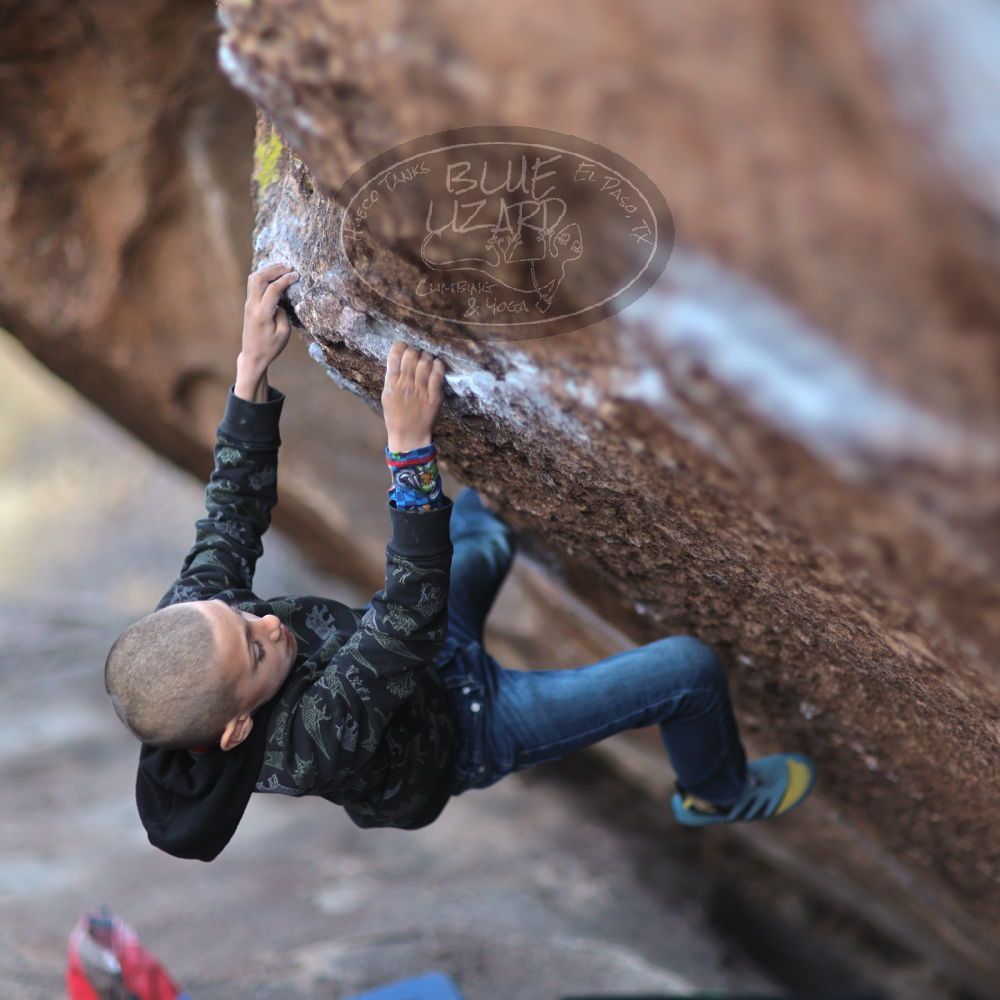 Blue Lizard Climbing and Yoga Hueco Tanks guiding on December 28, 2021, with the Sullivans
