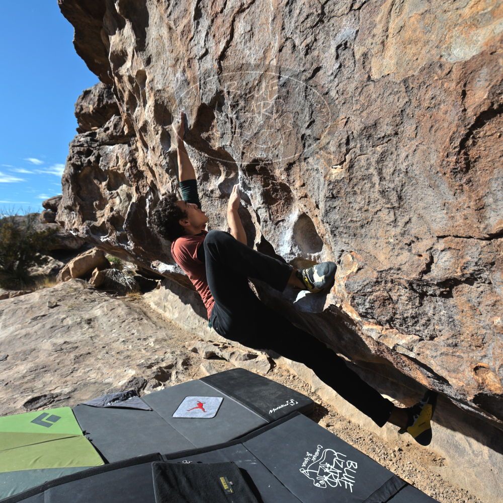 Blue Lizard Climbing and Yoga Hueco Tanks guiding on December 30, 2021, with Alastair, Callum, Chris, Giovanna, and Michael |