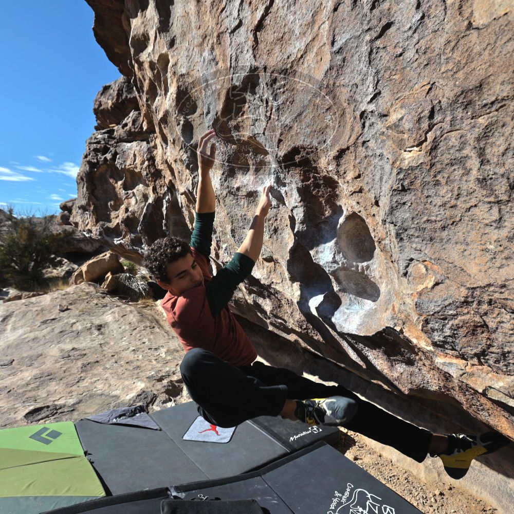 Blue Lizard Climbing and Yoga Hueco Tanks guiding on December 30, 2021, with Alastair, Callum, Chris, Giovanna, and Michael |